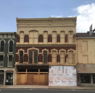 Then back to Pints & Union. The front doors are going to be red, and the first floor ceiling has been installed.